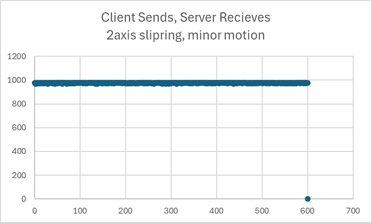- With two slip rings in series, lots of extra connectors, power + motors all sharing the assembly, it’s not surprising to see exactly the kind of intermittent dips you’ve plotted.