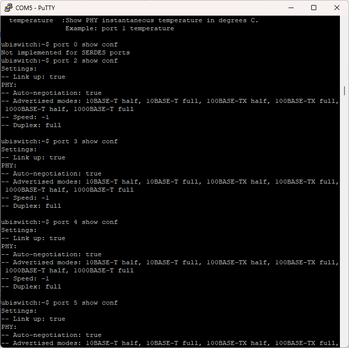 I tried switching it to USXGMII, but without the ability to read back from the port I can’t know that the command actually did anything. It doesn’t appear to have worked from what I can tell.